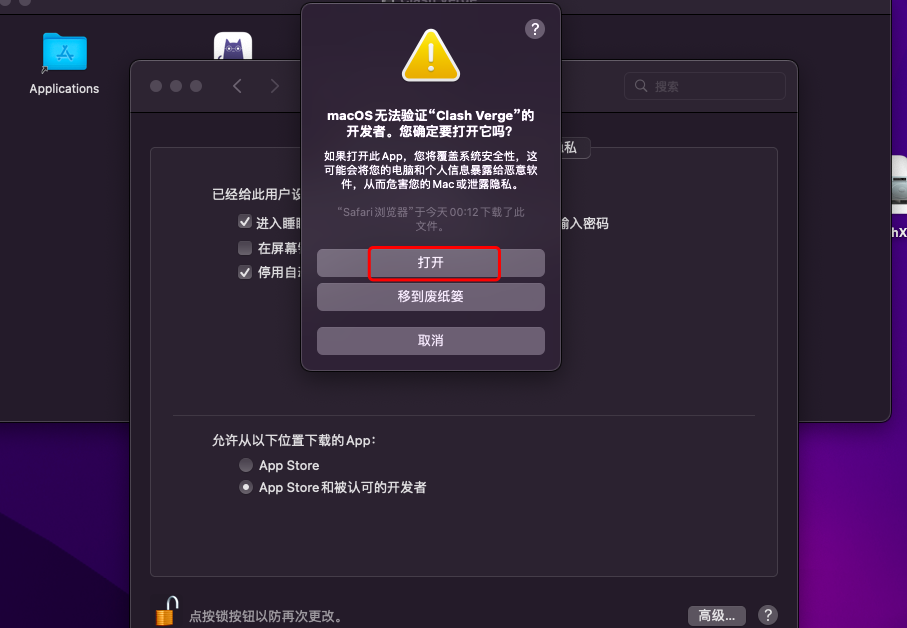 注意事项:如果安装出现(macOS无法验证App不包含恶意软件)