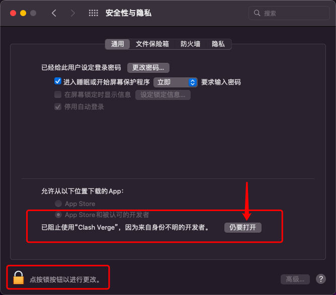 在“通用”标签页中,找到并点击“仍要打开”按钮,允许应用运行